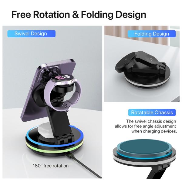 Magsafe 15w All In One Foldable Wireless Charger Fast Abs Acrylic material With Lamp